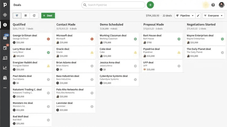 Pipedrive is renowned for its visual management sales pipelines making it easy to see where every deal stands and what’s next. Users can customize stages and seamlessly drag and drop elements; this ensures agents keep in touch on top of their deals and close sales faster.