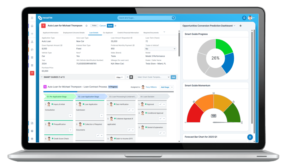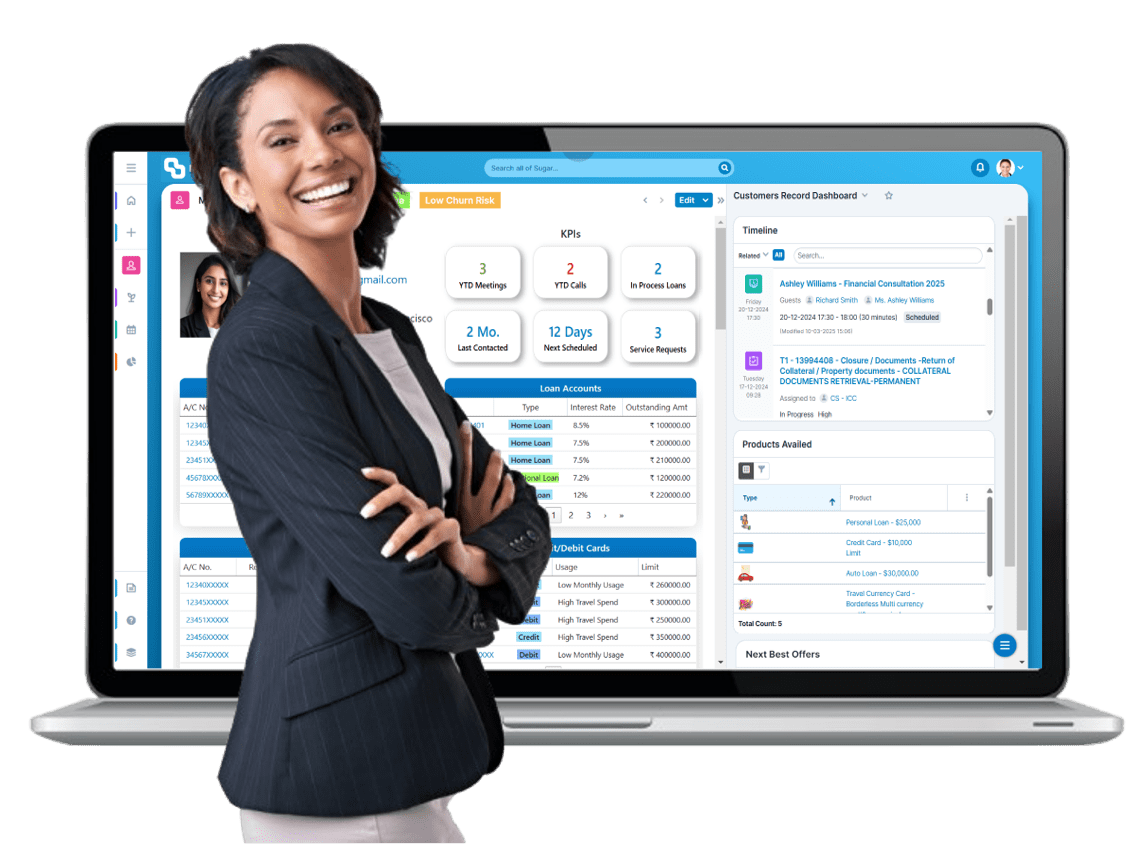 Contemporary banking is based on an integrated network of financial infrastructures and digital platforms. nexaFIN, developed on SugarCRM, integrates in a seamless fashion with core banking platforms, loan management systems, underwriting engines, KYC/AML compliance solutions, credit card management, BI & analytics software, and others. By integrating with account opening systems, document management, claims processing, and mobile banking solutions, nexaFIN provides an integrated customer view, workflows, and automated compliance monitoring. This broad integration ability enables banks to maximize operational efficiency, enhance risk management, and provide enhanced customer experiences at the same time while being fully regulatory compliant.