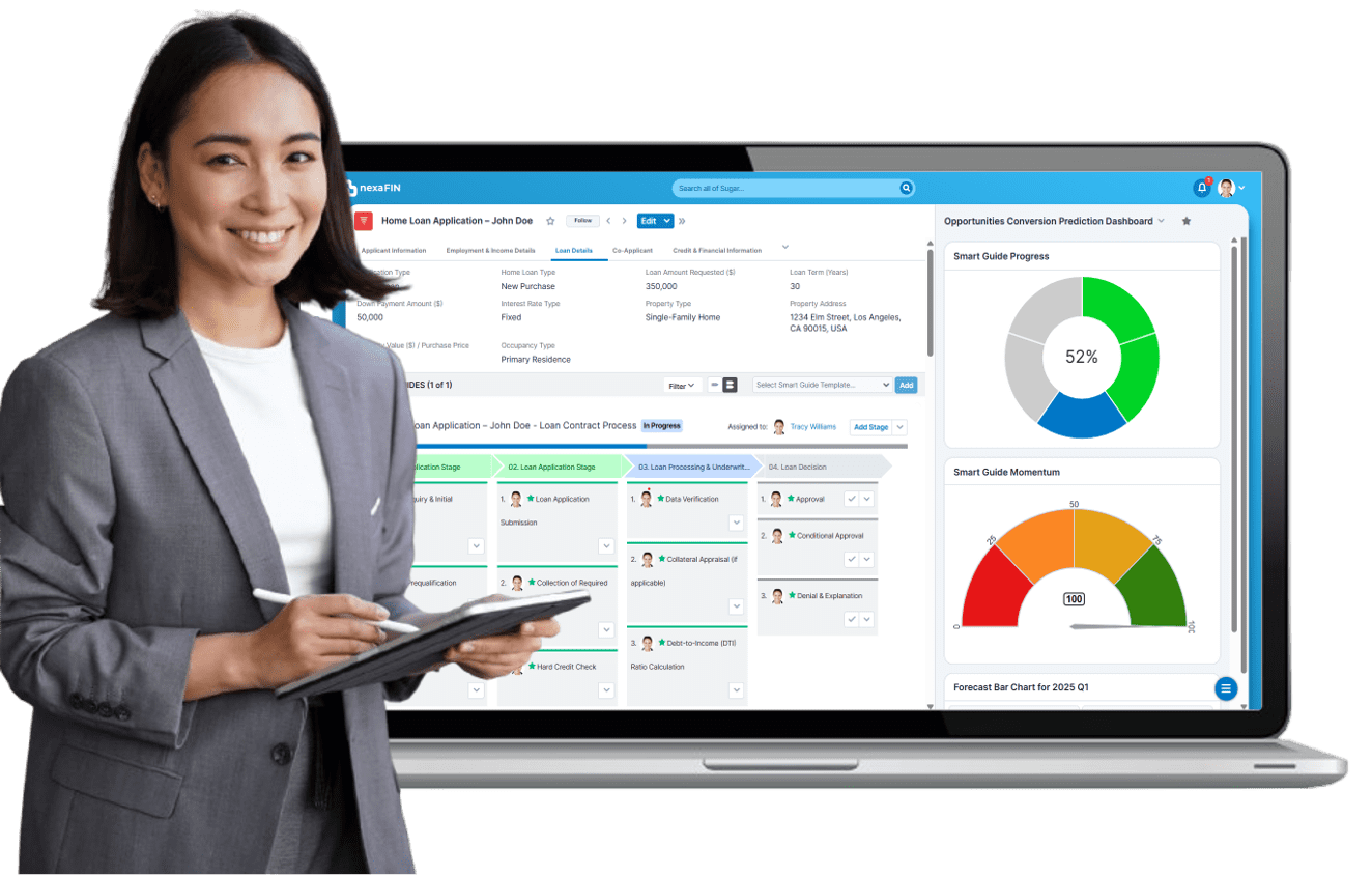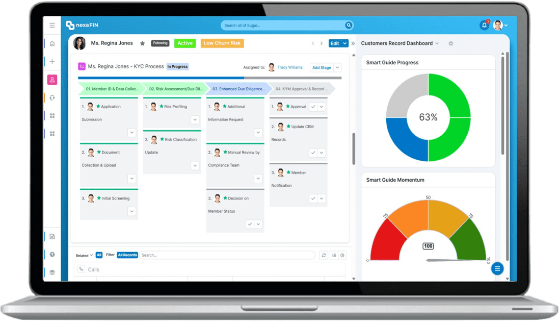 Contemporary banking is based on an interconnected network of financial systems and digital platforms. nexaFIN, which is developed atop SugarCRM, integrates flawlessly with core banking systems, loan origination platforms, underwriting systems, KYM/AML compliance software, credit card management, BI & analytics software, and so on. Integration with account opening platforms, document management, claims processing, and mobile banking platforms makes nexaFIN provide a complete view of member data, efficient workflows, and automated compliance monitoring. Such robust integration capacity facilitates credit unions’ ability to accelerate operation efficiency, heighten risk control, and provide better member experience with uninterrupted full regulatory conformity.