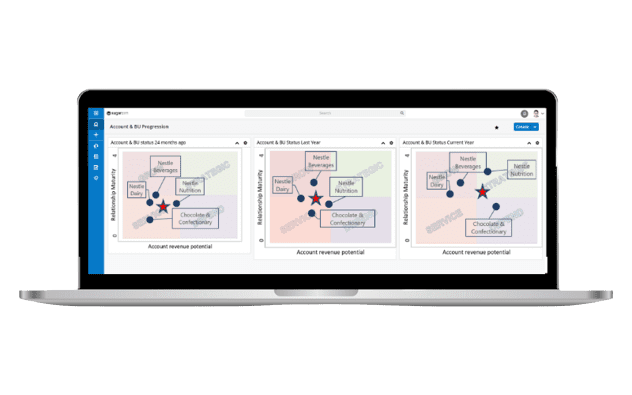 With SAM (Strategic Account Management) plans, you can now measure BU relationship strength and the active players involved. With a visible relationship chart, a quick look shows the current status of the account. You can also see how attractive a particular BU is to your business.