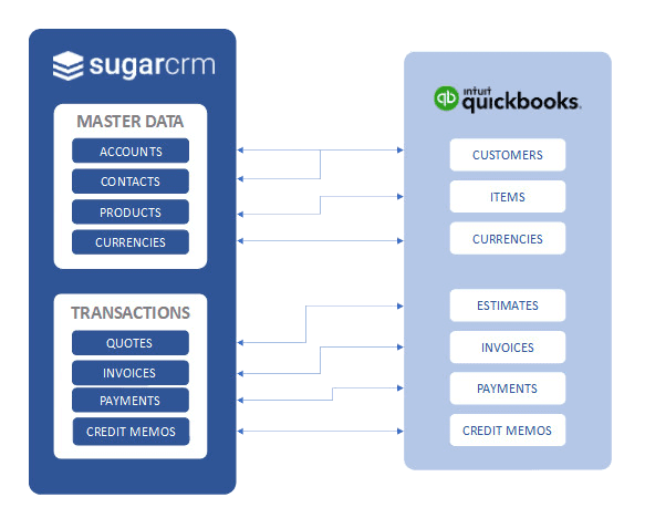 - Bi-directional synchronization of transaction data of Quotes/Estimates, Quote Line Items, Invoices, Invoice Items, Payments, Credit Memos/Credit Notes.