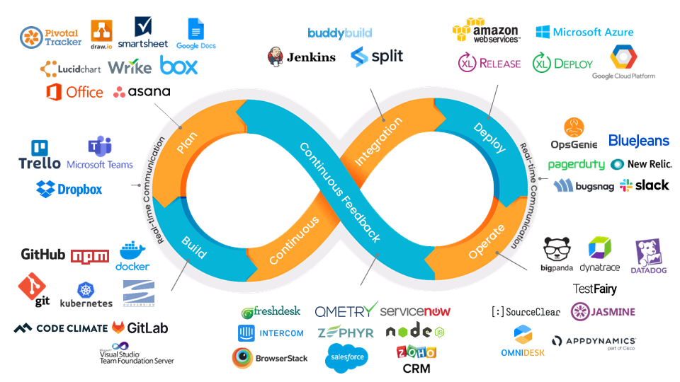 Our DevOps Tool Kit is designed to support end-to-end automation, integration, and continuous feedback across the entire development lifecycle. From planning and building with tools like Jira, Git, and Docker, to integration and deployment using Jenkins, Microsoft Azure, and AWS, our toolkit ensures streamlined workflows and fast delivery. We leverage comprehensive monitoring and feedback tools, such as New Relic, Datadog, and Slack, to maintain real-time communication and enhance operational efficiency. This toolkit enables our Innoveering approach to deliver reliable, scalable, and agile product engineering solutions.