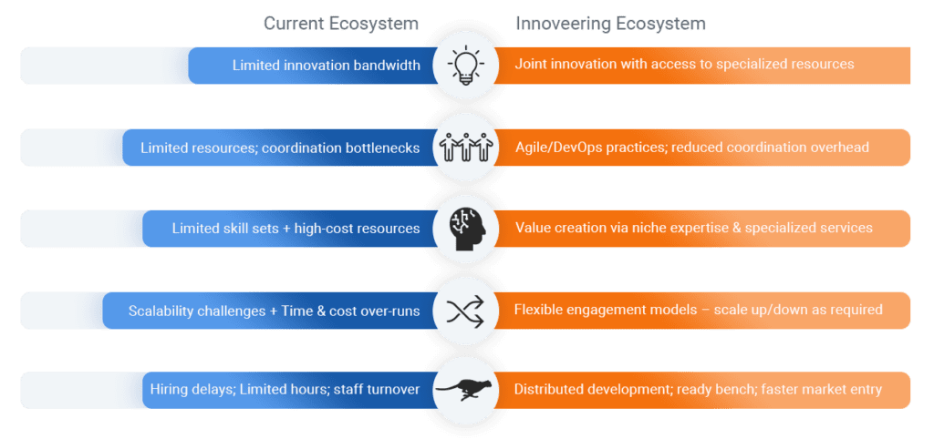 Ambit serves as a strategic innovation partner for Software, SaaS, and FinTech companies, enabling them to deliver exceptional solutions through Agile and DevOps frameworks with our specialized Innoveering Service. As a trusted solutions partner, we go beyond traditional support by developing tailored accelerators to bridge product gaps and meet evolving market demands.